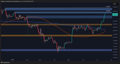 Ethereum has reclaimed a crucial resistance region at the $3.5K mark, showcasing notable buying activity. Nevertheless, the price has now reached a critical order block around the $3.7K range, suggesting a potential period of consolidation before any further upside continuation.